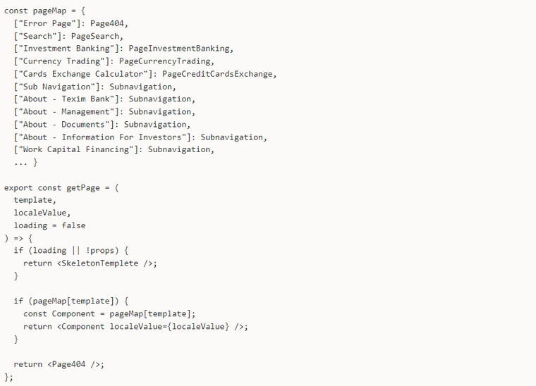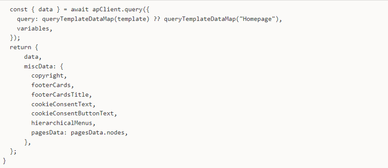 For the pre-defined pages we set up a page and GraphQL queries map , which was meant to be used by the page components based on their template name, which was defined in Wordpress.