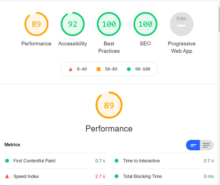 Success! Although it's not on top of the food chain( we couldn't optimize things like the carousel further, which is a rather cumbersome library by itself and ate up a lot of our score) it was still a significant way off from where we started, without having to do that major of a refactor. Although our approach was probably not optimal - you could possibly use a generated sitemap for getStaticPaths instead of a potentially expensive API call, for example, but just using Next.js for our site goes to show, that the right tools for the job can always make a world of difference.