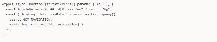 It is in getStaticProps where we fetch data by reusing our by-page API call, relevant to the page being generated.